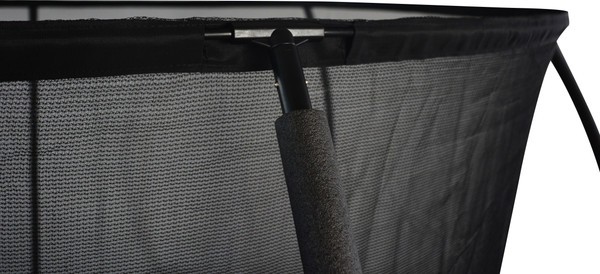 Дополнительную безопасность создают элементы каркаса. Опоры сетки сделаны из металла (25×1.2 мм, 6 шт.), а ноги — из металла (38×1.3 мм, 3 шт.). В комплект уже входят защитная сетка и лестница. Высота без сетки составляет 74 см, с защитной сеткой — 170 см. Диаметр прыжковой зоны — 305 см, что оставляет достаточно пространства для маневров. Общий вес батута в упаковке — 46 кг.