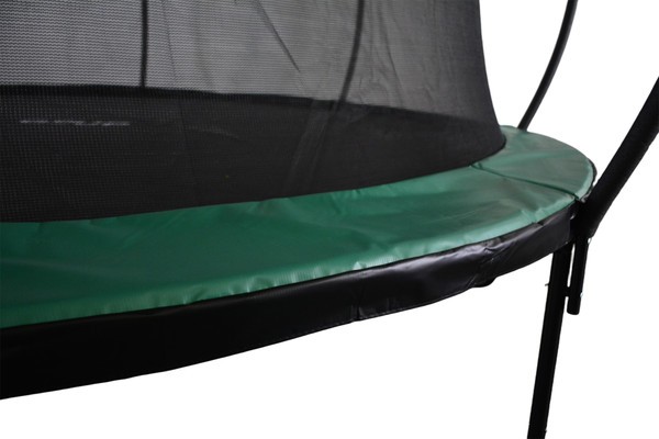 Батут уличного назначения сконструирован для активных прыжков на открытом воздухе. Черный цвет с темно-зеленым акцентом выглядит практично и органично вписывается в ландшафт. Рама из металла выдерживает интенсивные нагрузки, а прыжковое полотно из полипропилена сохраняет упругость и не вытягивается со временем.
