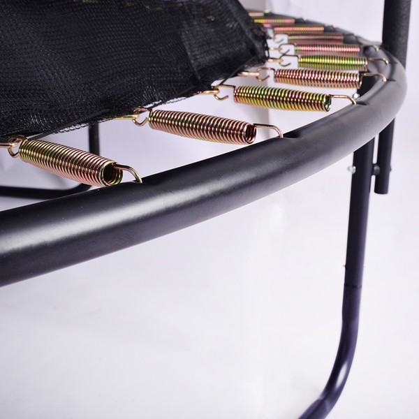 Металлическая рама демонстрирует прочность и устойчивость к нагрузкам. Полипропиленовое прыжковое полотно диаметром 331 см с пружинами обеспечивает упругую поверхность для прыжков. 60 гальванизированных пружин создают равномерное распределение нагрузки.