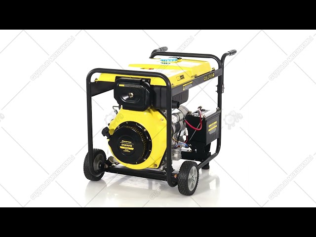 Дизельный генератор Champion DG6501E в открытом исполнении с колесами, 5500/5000 Вт, 230 В, однофазный, четырехтактный двигатель 474 см3, топливный бак на 12.5 л, ручной запуск/электростартер, 2 розетки 230 В, 99 кг.