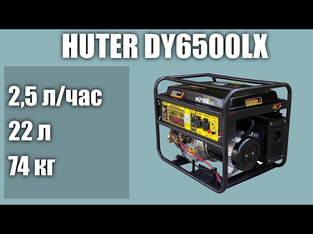 Генератор бензиновый Huter DY6500LX с электростартером 5,0/5,5 кВт, 220В, 13,0л.с, 22,0л, электростартер, 2х220В, вес 74кг