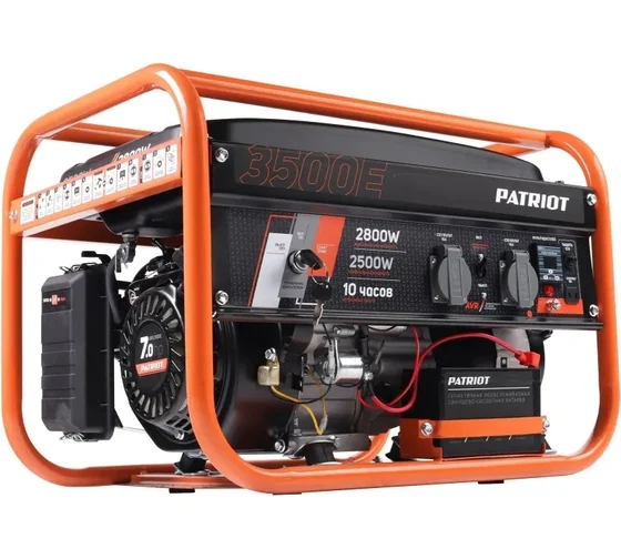Бензогенератор Patriot GRS 3500E (электростанция открытого типа) 2.8/2.5 кВт, четырехтактный двигатель 210 см3, топливный бак на 15 л, комбинированный стартер (ручной и электро), 78 дБ, однофазный