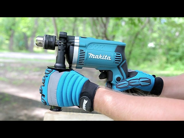 Дрель ударная MAKITA HP 1630 (HP1630) подходит для сверления отверстий в любых материалах (кирпич, дерево, бетон и пр.). Мощность дрели 710Вт, выходная мощность 420 Вт, максимальная выходная мощность 630 Вт. В верхней части корпуса дрели имеется переключатель режимов работы инструмента, которым можно активировать режим "сверление" или режим "сверление с ударом". В устройстве предусмотрена функция реверса и электронная регулировка оборотов. Реверс дает возможность использовать инструмент как шуруповерт для завинчивания шурупов и нарезания резьбы. Есть блокиратор кнопки включения. Корпус выполнен из ударопрочного пластика. Накладка на рукоятке из мягкой резины предотвращает скольжение инструмента в руке. Металлический корпус редуктора позволяет эффективнее отводить тепло при нагреве инструмента под большой нагрузкой для увеличения срока службы шестерёнок.