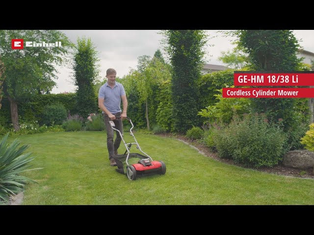 Барабанная газонокосилка Einhell GE-HM 18/38 Li-Solo (18 В, без аккумулятора в комплекте, ширина скашивания: 38 см, мягкий травосборник 45 л)
