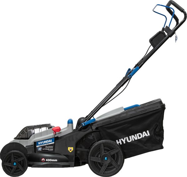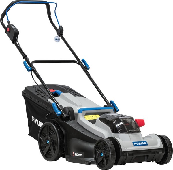 Газонокосилка аккумуляторная HYUNDAI HYL443iON (без акб), бесщеточный двигатель, напряжение аккумулятора: 40 В, ширина скашивания: 43 см, высота скашивания: 25-75 мм, объём травосборника: 45 л, мульчирование