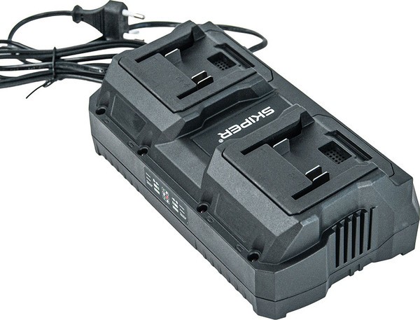 Модель оснащена бесщеточным двигателем, который обеспечивает стабильную работу, низкий уровень шума и увеличенный срок службы. В комплекте сразу идут 2 аккумулятора по 4 Ач, что позволяет работать дольше без перерывов, а двойное зарядное устройство экономит время на подзарядке.