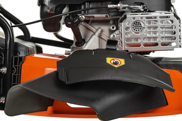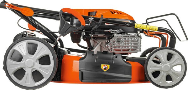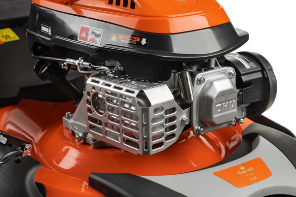 Бензиновая газонокосилка с четырехтактным двигателем предназначена для ухода за участками со сложным рельефом и густой травой. Номинальная мощность 4200 Вт при рабочем объеме 224 см³ позволяет эффективно справляться с работой без перегрузок. Скорость вращения ножа составляет 2850 оборотов в минуту, что обеспечивает чистый срез травы.