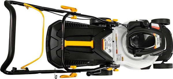Колеса создают надежное сцепление с поверхностью и позволяют газонокосилке легко маневрировать даже на неровных участках. Комбинированный травосборник из пластика и мягкой ткани легок в уходе и имеет флажок для указания заполненности. Быстрозажимные эксцентриковые фиксаторы позволяют быстро сложить газонокосилку для хранения. Насос подкачки топлива (праймер) обеспечивает быстрый старт двигателя даже после долгого простоя.