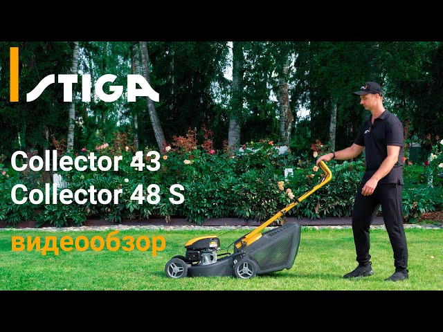 Бензиновая газонокосилка несамоходная STIGA COLLECTOR 43 (4-х тактный двигатель 2.6 л.с. объемом 123 см3, ширина кошения 41 см, высота среза 22-65 мм с центральной 6 уровневой регулировкой, прямой привод ножа, стальная дека, жесткий травосборник 60 литров).