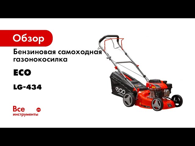 Газонокосилка бензиновая самоходная ECO LG-434 самоходная с отключаемым приводом. Большие колеса 8"/11" с подшипниками, задний и боковой выброс, мягкий травосборник 45 л с жестким пластиковым верхом, индикатор заполненного контейнера, штуцер для подключения воды для очистки деки. Размер передних колес 7", размер задних колес 8".