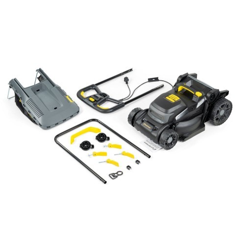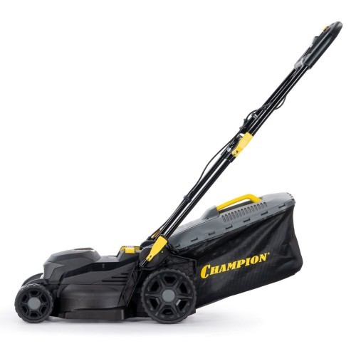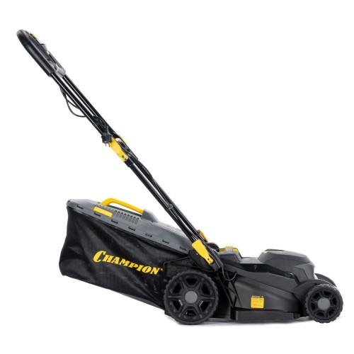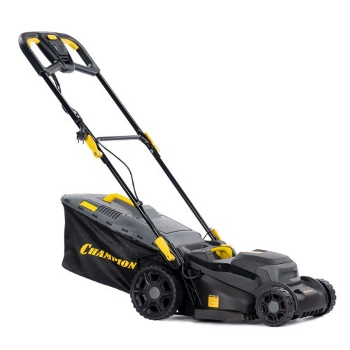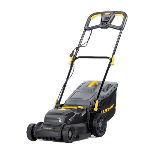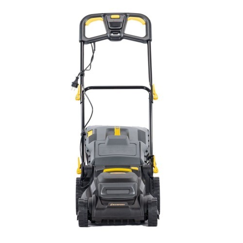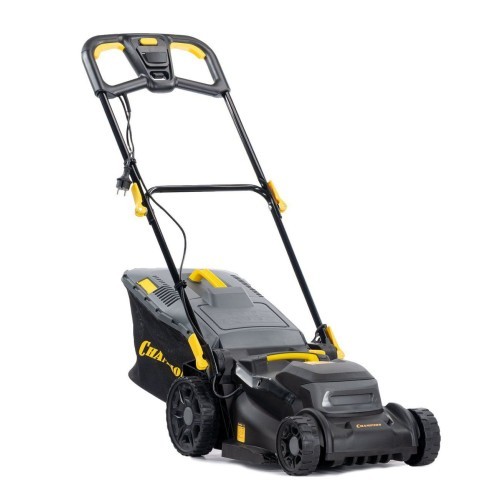 Газонокосилка электрическая CHAMPION EM3716, электрический двигатель, мощность двигателя: 1600 Вт, ширина скашивания: 37 см, высота скашивания: 25-75 см, объем травосборника: 40 л, вес: 15 кг