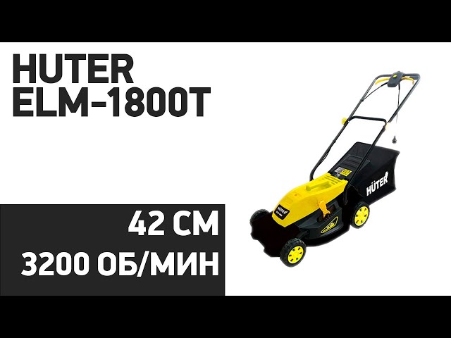 Газонокосилка электрическая Huter ELM-1800 (1800 Вт, ширина кошения 42 см, высота среза 28-55 мм с центральной 5 уровневой регулировкой, пластиковая дека, мягкий травосборник 45 литров).