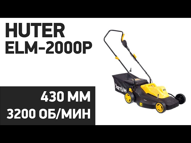 Газонокосилка электрическая Huter ELM-2000P (2000 Вт, ширина кошения 43 см, высота среза 25-75 мм с центральной 5 уровневой регулировкой, прямой привод ножа, пластиковая дека, жесткий травосборник 45 литров).