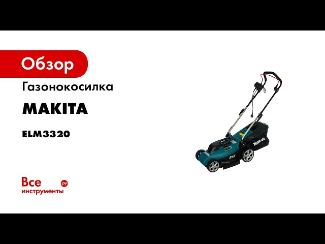 Электрическая газонокосилка MAKITA ELM3320 (1,2 кВт, щеточный двигатель, ширина кошения 33 см, высота среза 20-55 мм с центральной 3 уровневой регулировкой, прямой привод ножа, пластиковая дека, мягкий травосборник 30 литров).
