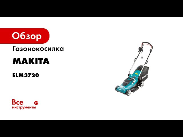 Электрическая газонокосилка MAKITA ELM 3720 (1,4 кВт, щеточный двигатель, ширина кошения 37 см, высота среза 20-55 мм с центральной 3 уровневой регулировкой, прямой привод ножа, пластиковая дека, мягкий травосборник 40 литров, без мульчирования).