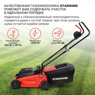 В нашем интернет-магазине Ydacha.by можно купить: Газонокосилка электрическая StarWind ELM-1200 по самой лучшей цене в Минске. Мы доставляем товар по всей Беларуси, принимаем любую удобную для вас форму оплаты, предоставляем рассрочку платежа.