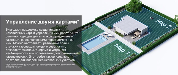Робот-газонокосилка A1 Pro предназначен для мульчирования (измельчение травы и удобрение газона скошенной травой). Эффективный уход за газоном с помощью U-образной траектории движения.