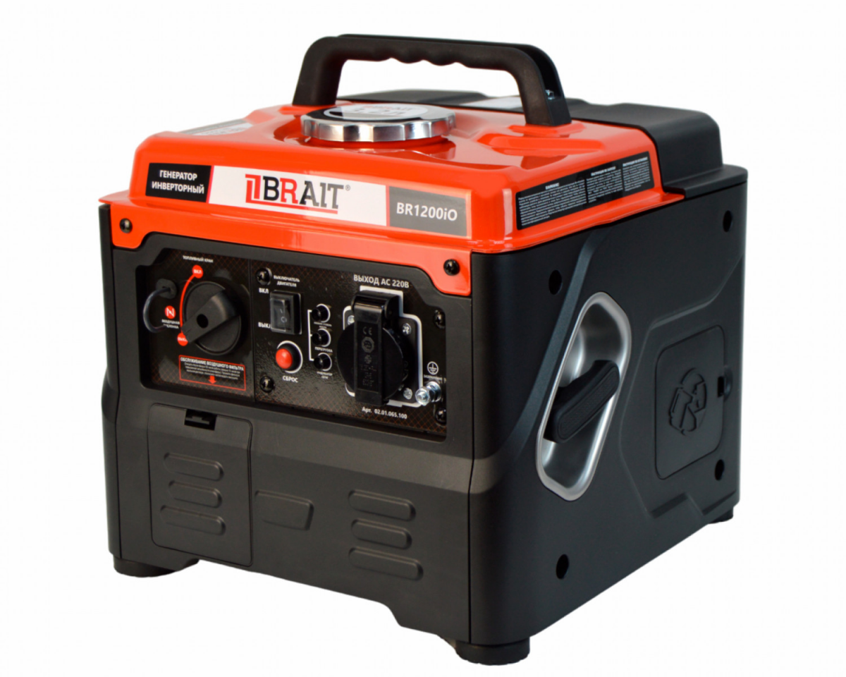 Инверторный бензогенератор Brait BR1200iO (электростанция в закрытом корпусе) 1.1/1 кВт, четырехтактный двигатель 60 см3, топливный бак на 3.2 л, ручной стартер, однофазный, розетки: 230 В (1х16A).