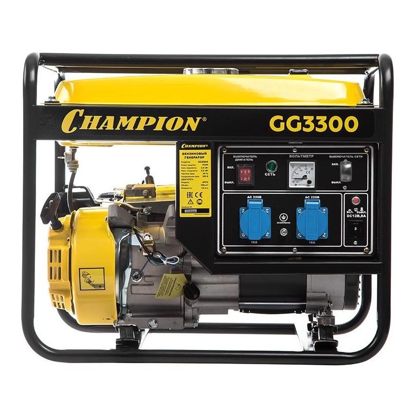 Champion GG3300 - электростанция для энергоснабжения потребителей суммарной мощностью до 3000 Вт. Ее применение будет особенно актуально в полевых условиях, при проведении спасательных работ, для питания инструмента на стройплощадках. Агрегат подходит для устройств, которые имеют высокую нагрузку при пуске.