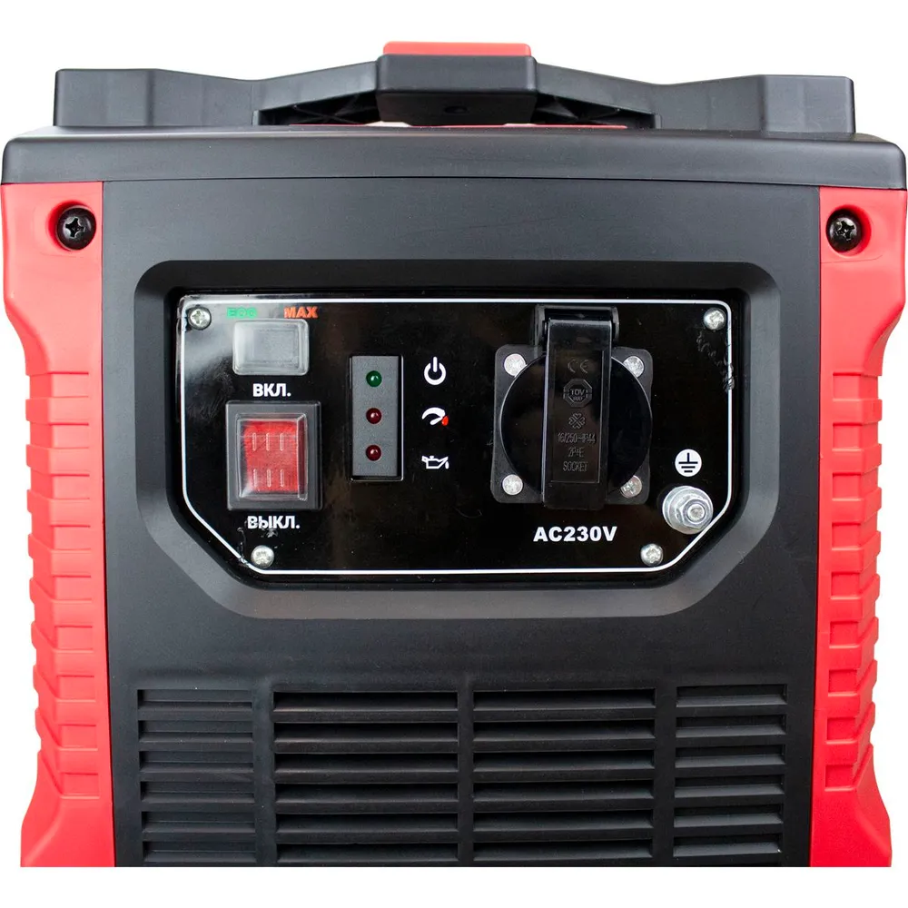 Бензогенератор инверторный Edon PRO PT-1200 в закрытом исполнении (в корпусе) с ручкой, 900/650 Вт, однофазный, четырехтактный двигатель 53.5 см3, топливный бак на 4.5 л, ручной запуск, 1 розетка 220 В, 14 кг.