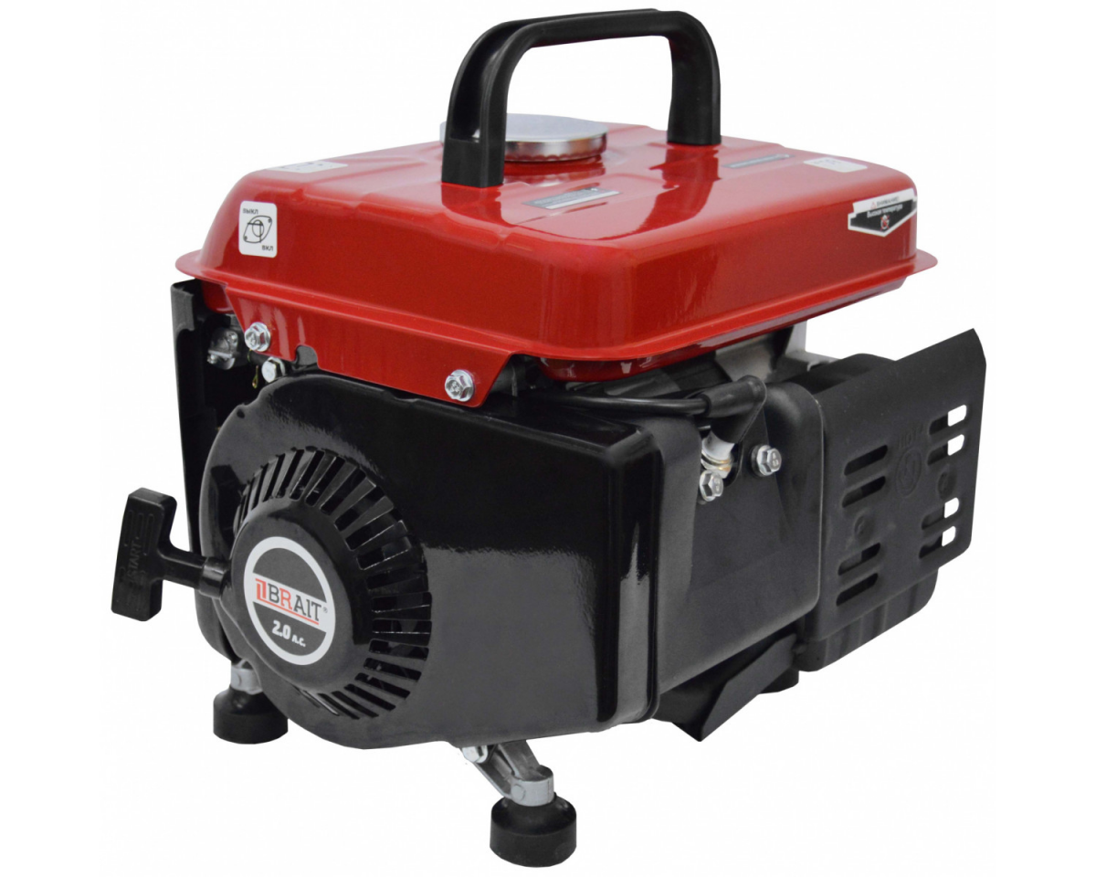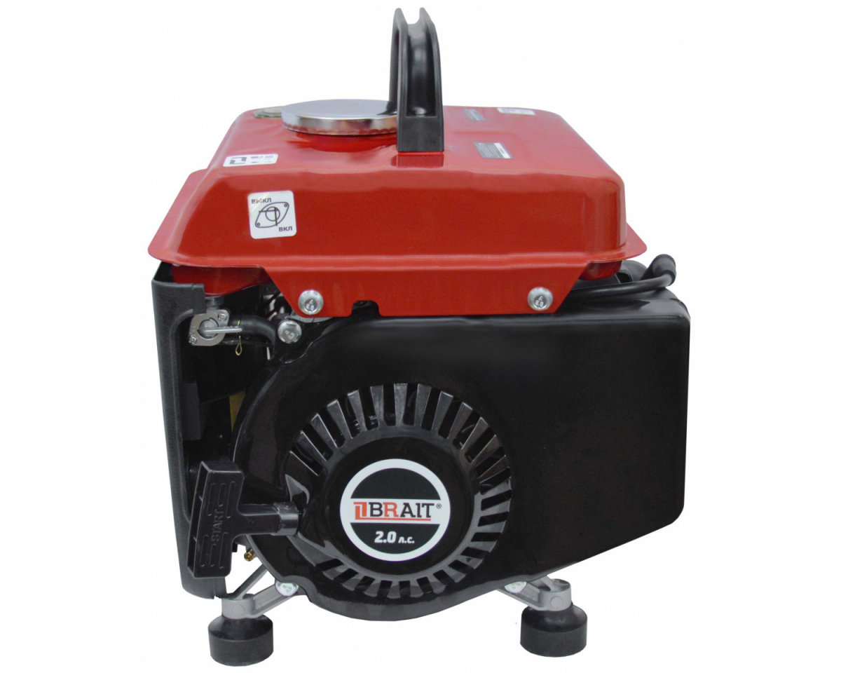 Бензогенератор Brait BR 950 (электростанция открытого типа) 0.9/0.7 кВт, двухтактный двигатель 63 см3, топливный бак на 4.2 л, ручной стартер, однофазный