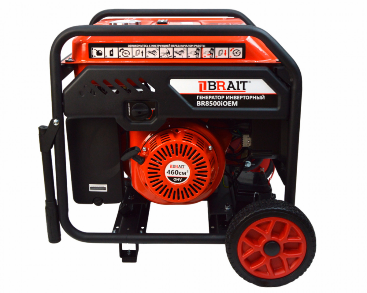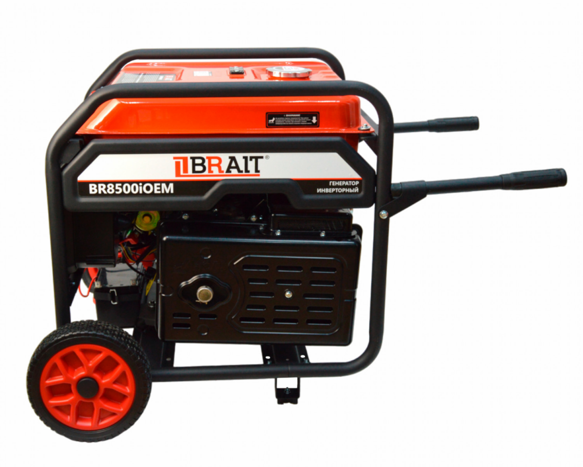 Инверторный бензогенератор Brait BR8500iOEM (электростанция открытого типа) 8/7 кВт, четырехтактный двигатель 460 см3, топливный бак на 25 л, комбинированный стартер (ручной и электро), однофазный, розетки: 230 В (1х16A, 1х32A ).