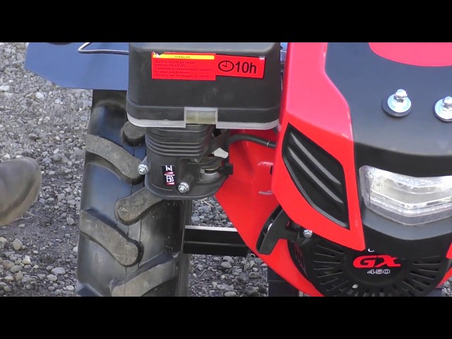 Двигатель на 450 куб. см поддерживает ручной запуск и обеспечивает движение на двух передних и задней передачах механической коробки. Даже с прицепом груженый агрегат неплохо тянет, эффективно справляется с дроблением пластов земли после зимовки участка. Корпус обеих частей сборного мини-трактора из мотоблока и адаптера изготовлен из прочного стального сплава. На моторе предусмотрена система снижения уровня виброотдачи.