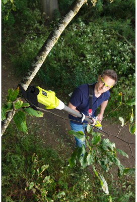 Телескопическая штанга увеличивает длину с 1.9 м до 2.7 м, что позволяет не использовать стремянку при обрезке веток на большой высоте.