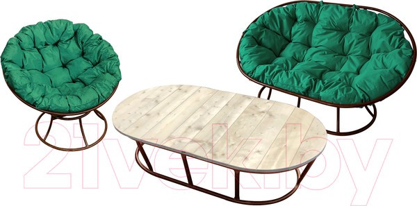 Комплект садовой мебели M-Group Мамасан, Папасан и стол / 12130204 (коричневый/зеленая подушка)
