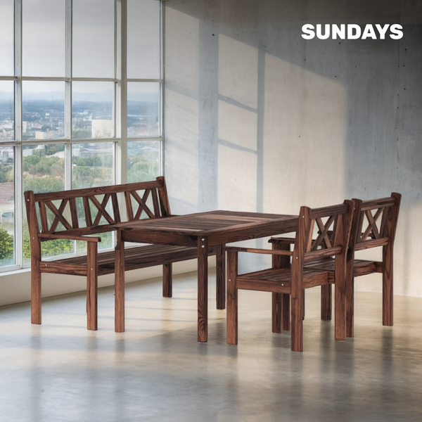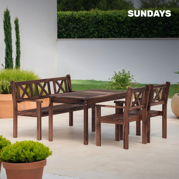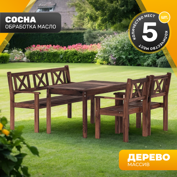 Комплект мебели для сада отличается прочной деревянной конструкцией, устойчивостью к нагрузкам и долговечностью. Масляное покрытие не только защищает древесину от влаги и загрязнений, но и подчеркивает ее естественную красоту, продлевая срок службы мебели. Комплект поставляется в разобранном виде, что упрощает его транспортировку. Гармоничный комплект обеспечивает максимальный комфорт и эстетичность в оформлении пространства, позволяя наслаждаться временем с семьей и друзьями на свежем воздухе.