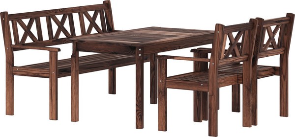 Комплект садовой мебели — стильное и функциональное решение для создания уютных зон отдыха на верандах, террасах и в беседках. В комплект входят четыре предмета: два кресла, один стол и скамья, что позволяет комфортно разместиться до пяти человек и делает комплект подходящим выбором как для семейных посиделок, так и для коммерческого использования — в кафе, ресторанах с летними площадками и загородных отелях.