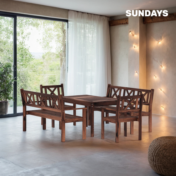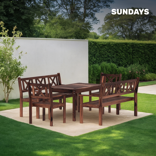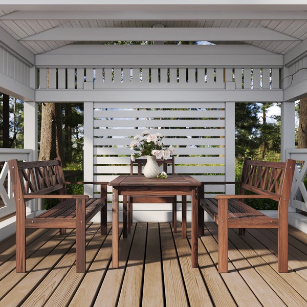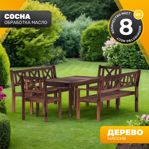 Комплект мебели для сада отличается прочной деревянной конструкцией, устойчивостью к нагрузкам и долговечностью. Масляное покрытие не только защищает древесину от влаги и загрязнений, но и подчеркивает ее естественную красоту, продлевая срок службы мебели. Комплект поставляется в разобранном виде, что упрощает его транспортировку. Гармоничный комплект обеспечивает максимальный комфорт и эстетичность в оформлении пространства, позволяя наслаждаться временем с семьей и друзьями на свежем воздухе.