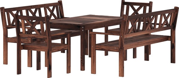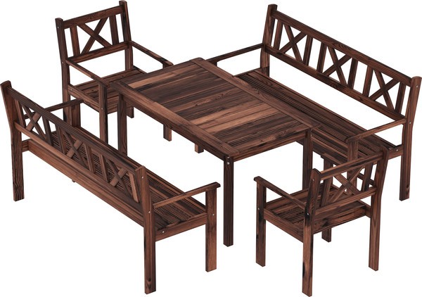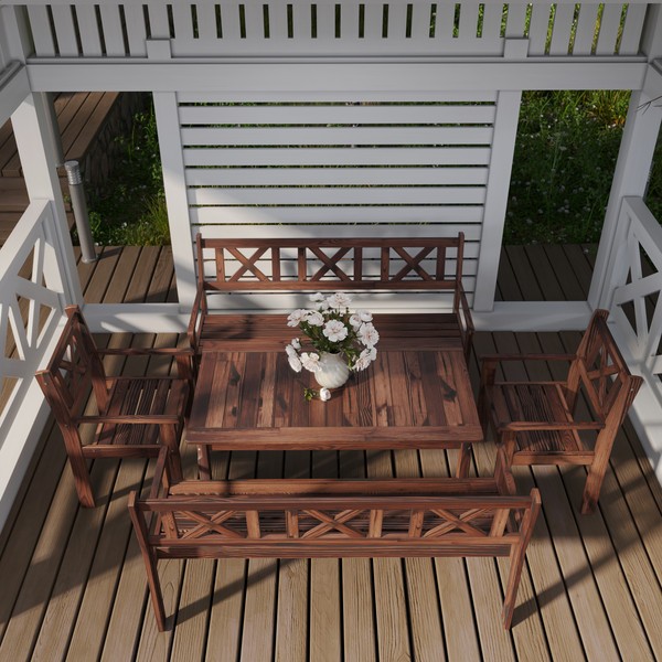 Комплект садовой мебели — стильное и функциональное решение для создания уютных зон отдыха на верандах, террасах и в беседках. В комплект входят пять предметов: два кресла, один стол и две скамьи, что позволяет комфортно разместиться до восьми человек и делает комплект подходящим выбором как для семейных посиделок, так и для коммерческого использования — в кафе, ресторанах с летними площадками и загородных отелях.