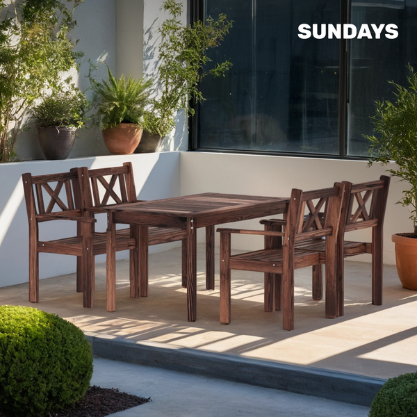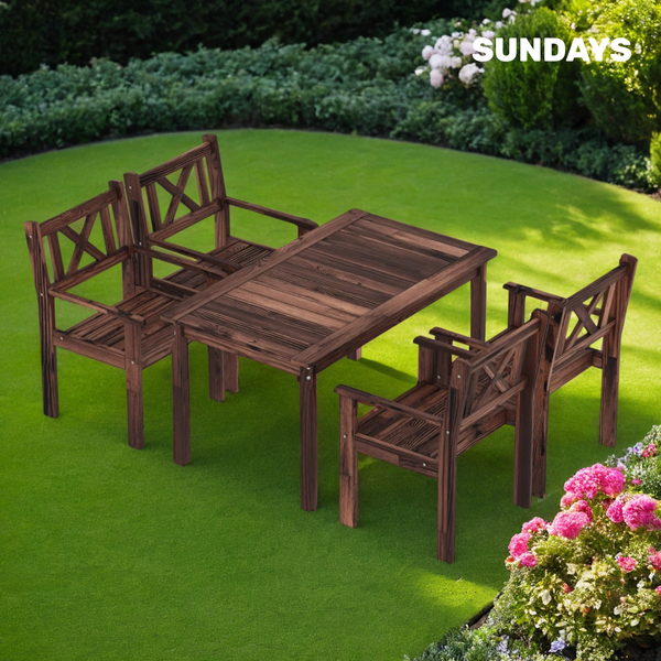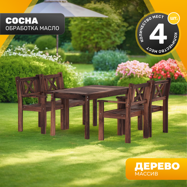 Комплект мебели для сада отличается прочной деревянной конструкцией, устойчивостью к нагрузкам и долговечностью. Масляное покрытие не только защищает древесину от влаги и загрязнений, но и подчеркивает ее естественную красоту, продлевая срок службы мебели. Комплект поставляется в разобранном виде, что упрощает его транспортировку. Гармоничный комплект обеспечивает максимальный комфорт и эстетичность в оформлении пространства, позволяя наслаждаться временем с семьей и друзьями на свежем воздухе.