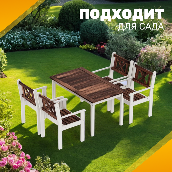 Комплект мебели для сада отличается прочной деревянной конструкцией, устойчивостью к нагрузкам и долговечностью. Масляное покрытие не только защищает древесину от влаги и загрязнений, но и подчеркивает ее естественную красоту, продлевая срок службы мебели. Комплект поставляется в разобранном виде, что упрощает его транспортировку. Гармоничный комплект обеспечивает максимальный комфорт и эстетичность в оформлении пространства, позволяя наслаждаться временем с семьей и друзьями на свежем воздухе.