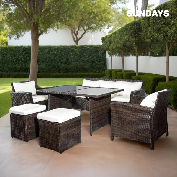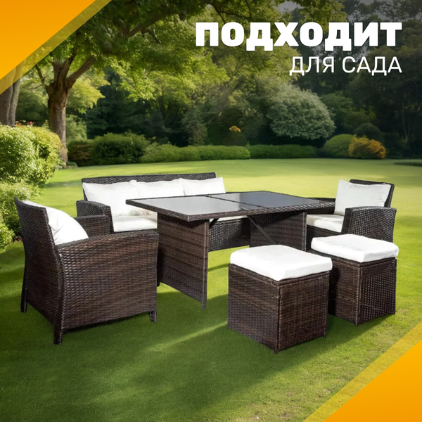 Сочетание прочной конструкции, устойчивого к внешним воздействиям плетения и продуманной эргономики формирует гармоничное пространство для отдыха. Комплект мебели для сада объединяет практичность и современный дизайн, создавая атмосферу уюта на открытом воздухе.