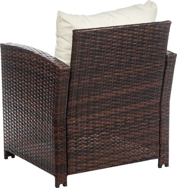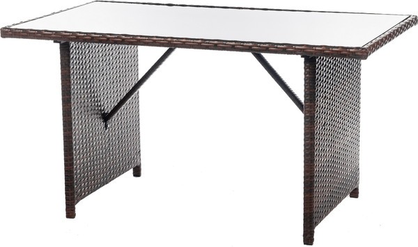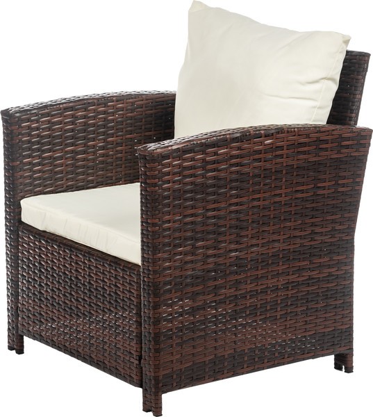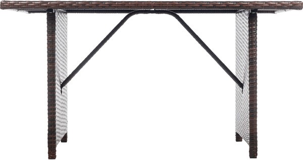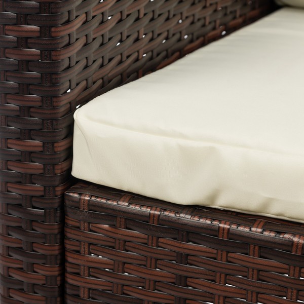 Мебель выполнена в стиле плетения из искусственного ротанга темно-коричневого цвета с металлическим каркасом. Использование прочных материалов способствует долговечности, устойчивости к погодным условиям и УФ-излучению и сохранению внешнего вида.