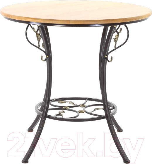 Садовый стол с круглой столешницей представляет собой изящное сочетание железа и дерева.