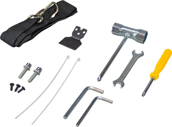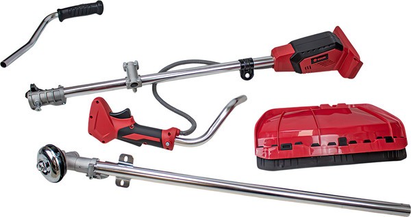 Дополнительная комплектация защитный кожух, плечевой ремень, триммерная головка, металлический диск, набор инструментов, набор крепежный