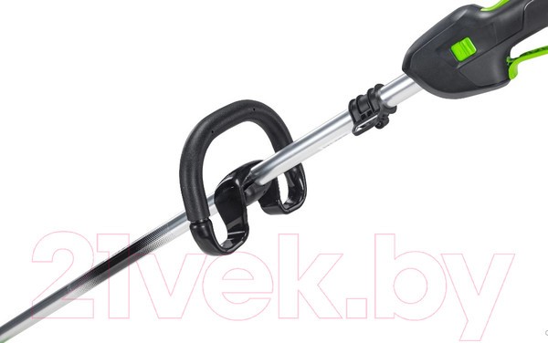 Используемый двигатель — новейшая разработка компании: у него большая мощность до 1.5 КВт и небольшие размеры. За счет этого двигатель расположен внизу делает устройство максимально легким — всего 4.25 кг. Для оптимальной работы триммер имеет 2 скорости кошения: максимальная производительность при повышенных оборотах или максимальная продолжительность работы при стандартных оборотах. Эргономичный дизайн и наплечный ремень рукоятки сделает работу более удобной.