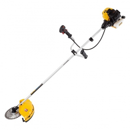 Бензиновый триммер Denzel DTL-33 предназначен для ухода за газоном и борьбы с зарослями на участке. Он оснащен режущей леской и пильным диском из конструкционной стали, поэтому справляется с любой травой и молодым кустарником. Ширина скашивания леской составляет 42 см, диском — 25,5 см.
