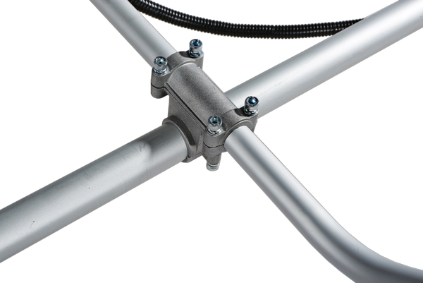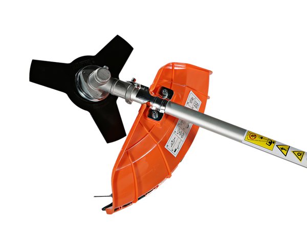 - Вал повышенной прочности — обеспечивает передачу крутящего момента от двигателя к режущей оснастке, позволяя использовать разные типы оснастки, включая металлические ножи.