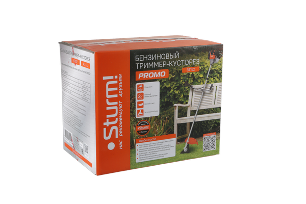 Для обеспечения высокого ресурса бензокосы особое внимание уделено наиболее важным элементам конструкции: цилиндро-поршневая группа имеет покрытие из твердого хрома, шестерни редуктора выполнены из закаленной стали, установлена надежная электронная система зажигания и карбюратор, обеспечивающий стабильность работы при различных температурных условиях, улучшена система охлаждения двигателя. Легкость запуска инструмента гарантируют механизм облегченного старта с дополнительной пружиной и праймер. Для оптимальной настройки бензокосы под конкретного пользователя конструкцией предусмотрена возможность продольной регулировки как рукояти, так и проушины крепления ремня. В расширенную комплектацию Sturm BT152 PROMO помимо плечевого ремня и аксессуаров для сборки и настройки, включены полуавтоматическая катушка с нейлоновой леской и фреза.