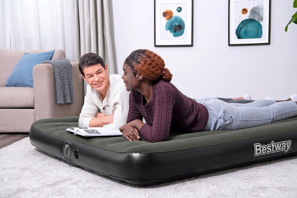 Двуспальный надувной матрас с насосом. Матрас надувной подходит для дома, палатки и отдыха на природе. Эта кровать обещает огромную долговечность, а также комфорт в течение всей ночи. Благодаря компактным размерам надувная кровать быстро устанавливается и сразу же готова к использованию. Удобная зона для отдыха и прочная конструкция обеспечивают спокойный сон.