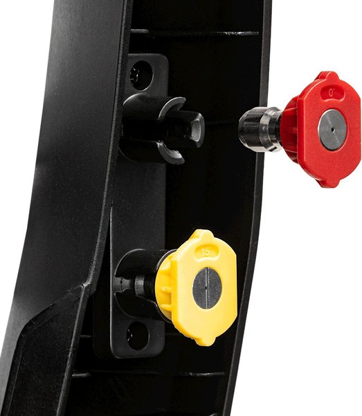 9. Удобная система хранения аксессуаров обеспечивает надежную фиксацию пеногенератора, форсунок и грязевой фрезы в легкодоступном месте.