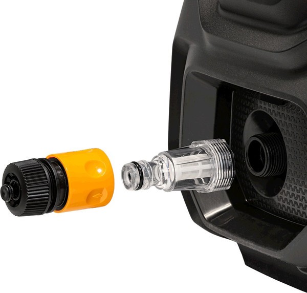 18. Богатая комплектация включает фильтр для воды, комплект насадок, пеногенератор и переходники, что позволяет приступить к работе сразу после покупки.