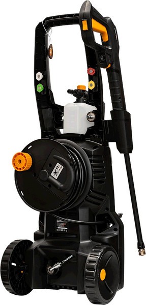 - Конструктивные особенности бак для моющего средства, ручка для перемещения, фильтр, колеса ( 2 шт.), катушка для шланга