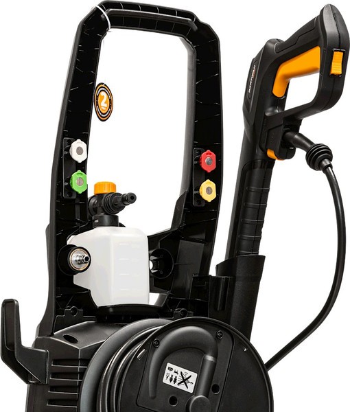 9. Удобная система хранения аксессуаров обеспечивает надежную фиксацию пеногенератора, форсунок и грязевой фрезы в легкодоступном месте.