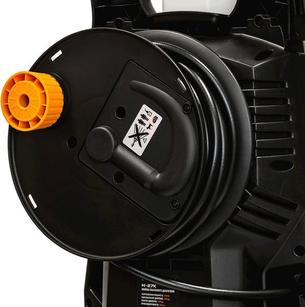 7. Катушка для шланга сзади предоставляет удобное хранение и мгновенную готовность к работе.