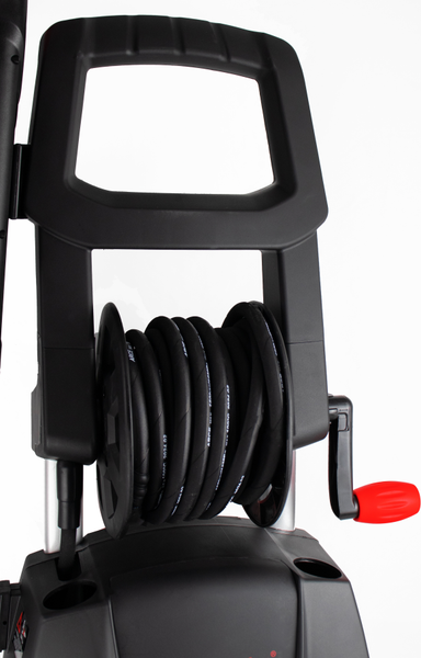 - Конструктивные особенности фильтр, катушка для шланга, бак для моющего средства, колеса, ручка для перемещения